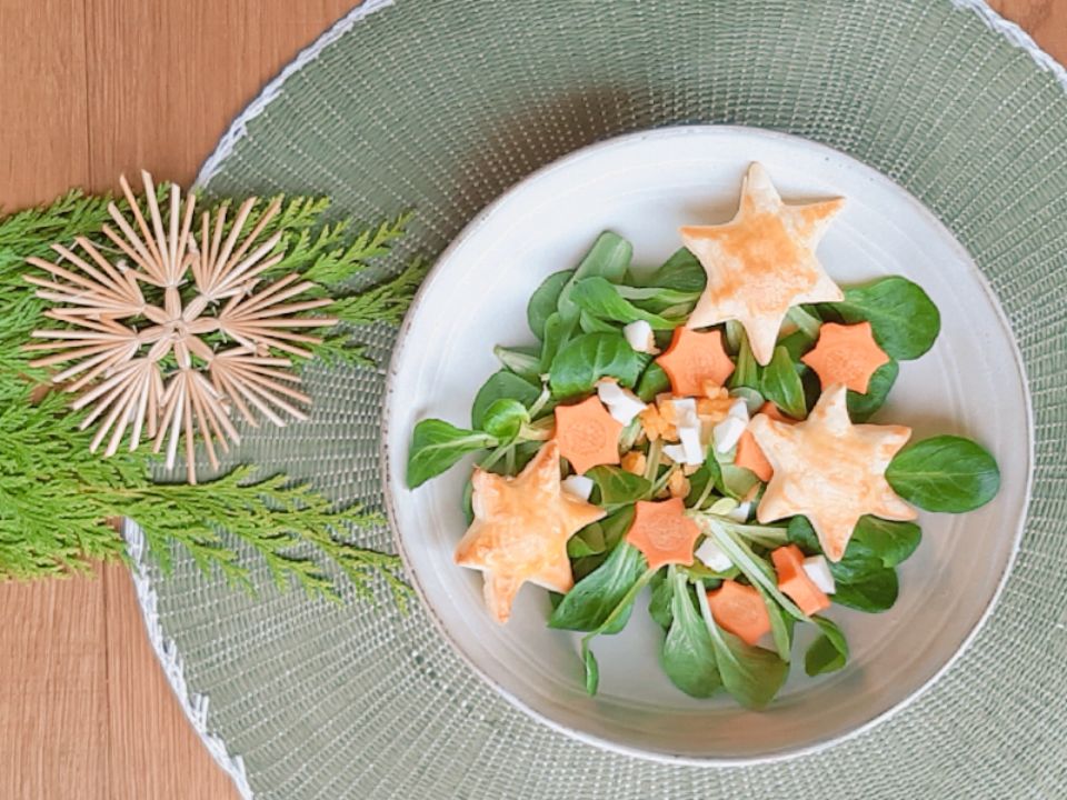 Wir lieben das Backen herzhafter Weihnachtsplätzchen. Deshalb haben wir Blätterteigsterne ausgestochen und zu unserem festlichen Lieblingssalat serviert.
