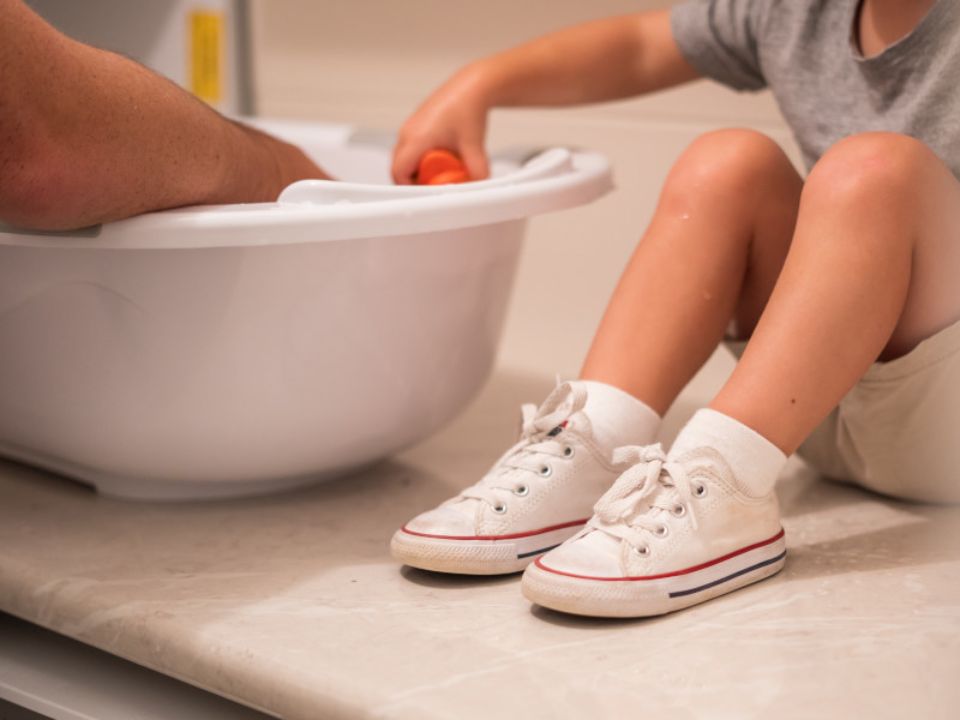 - Badetücher, Schüsseln, Löffel, Nagelscheren, Nagellack bereitstellen.