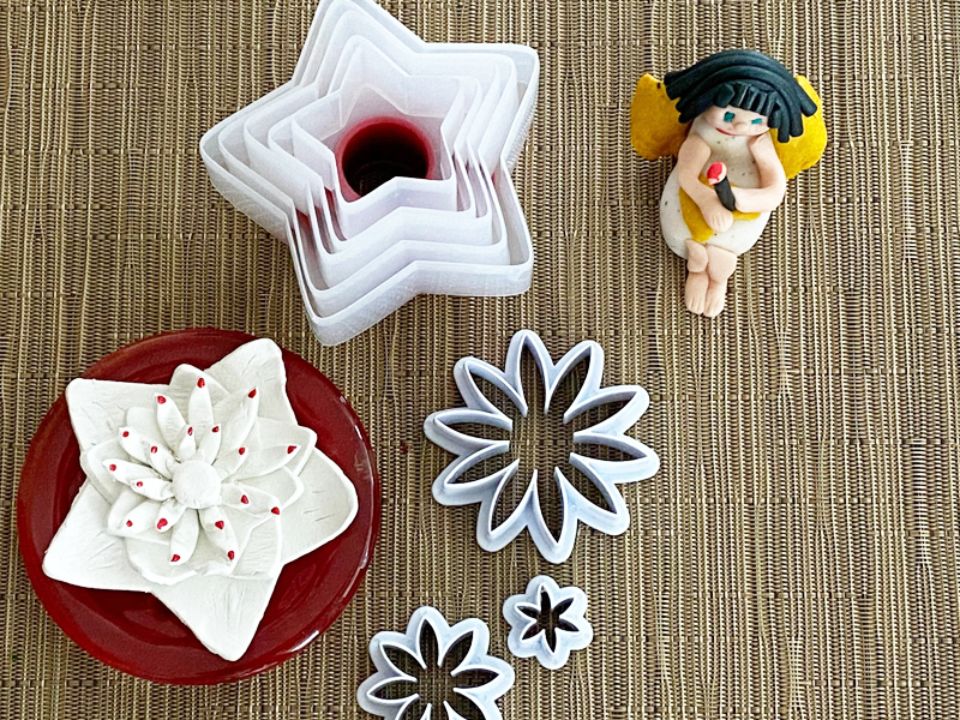 • Den Softton oder die Keramiplast Modelliermasse auswallen, ausstechen, kneten, formen und zu Blumen zusammenstellen