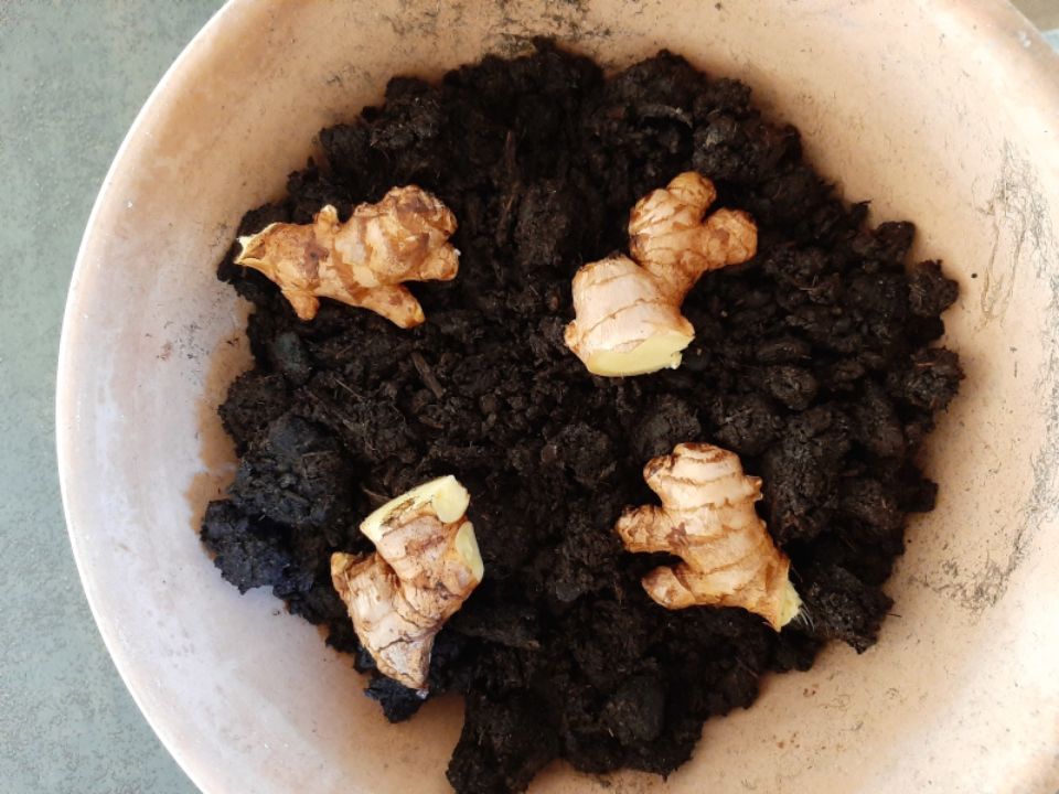 - Ingwerwurzel in die Erde setzen.