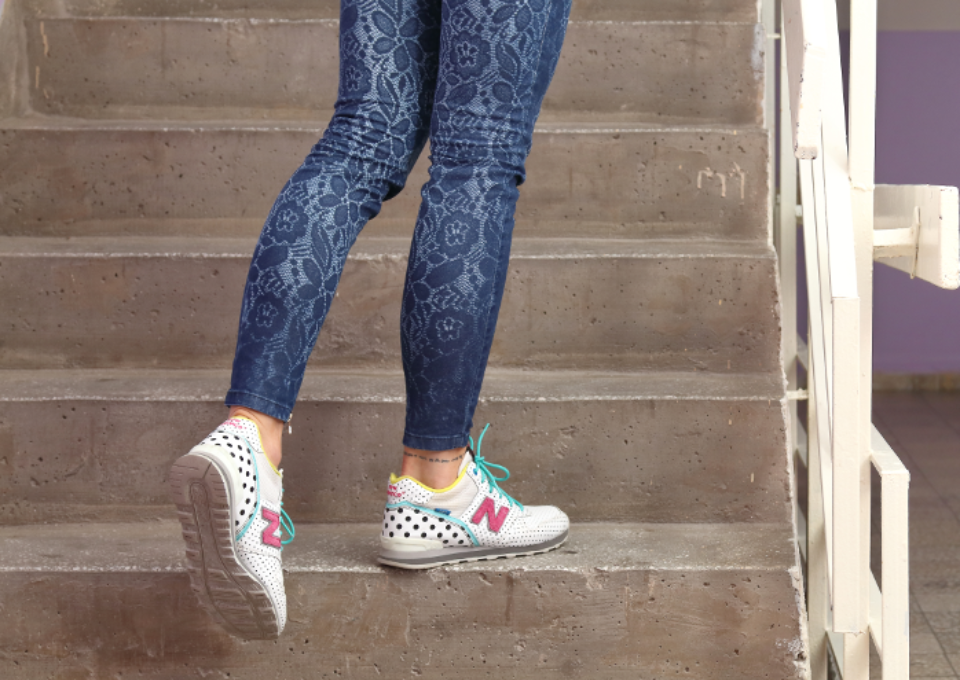 Selbst wenn es bei Ihnen einen Lift hat, nehmen Sie die Treppe und versuchen Sie zwei oder drei Tritte auf einmal zu nehmen, denn das stärkt die Bein- und Pomuskeln. Wenn Sie dann noch im Zickzack hochgehen, arbeiten auch die Innenschenkel verstärkt mit.