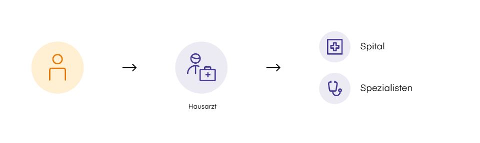 Wenden Sie sich bei jedem medizinischen Anliegen an Ihren Hausarzt. Andere Leistungserbringer (insbesondere Spezialisten) dürfen nur auf Überweisung durch Ihren Hausarzt aufgesucht werden.