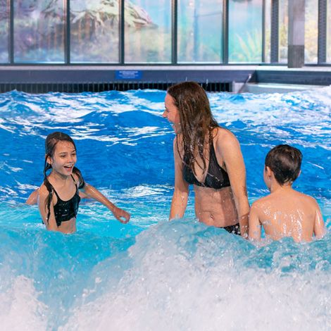 Auf der Suche nach einer Actionpause? Schwimmen Sie im Rio Mare Flussbad gegen den Strom, stürzen Sie sich in die 1,20 Meter hohen Wellen oder entspannen Sie sich im Sole Bad mit 36°C warmem Wasser und in der Alpa Therme mit Sprudelliegen und Unterwassermusik.
