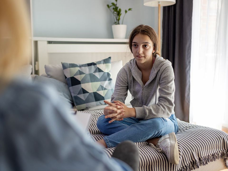 Abordez le thème de manière empathique, en montrant que vous êtes intéressé/e et en souci. Entrez en matière quant aux peurs évoquées par votre enfant. Demandez-lui comment vous pouvez l’aider. Par exemple, si vous pouvez demander conseil ensemble. Accompagnez votre enfant chez le/la médecin de famille / le/la psychologue.