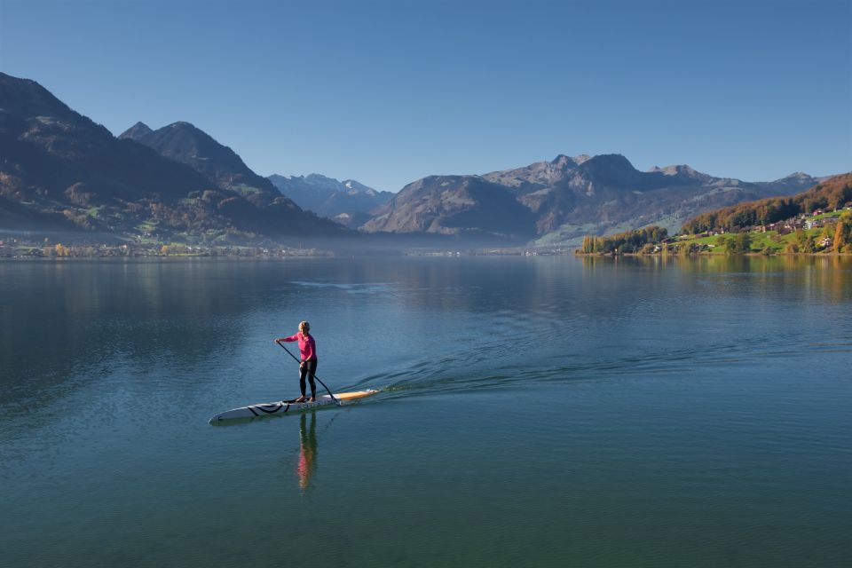 Profitez des plaisirs de la glisse en SUP sur le Sarnersee, sur des eaux généralement calmes ainsi que d’un environnement naturel spectaculaire, avec un panorama sur les Alpes. Sa rive principalement plate fournit suffisamment de possibilités pour une mise à l’eau et une sortie de l’eau simples. Avec 6,5 kilomètres de long et 1,3 kilomètre de large, il est bien adapté aux circuits les plus longs. Ceux et celles et souhaitent reprendre des forces après l’effort peuvent se rendre dans l’un des restaurants près du lac, à Sarnen, Sachsels ou Giswil.