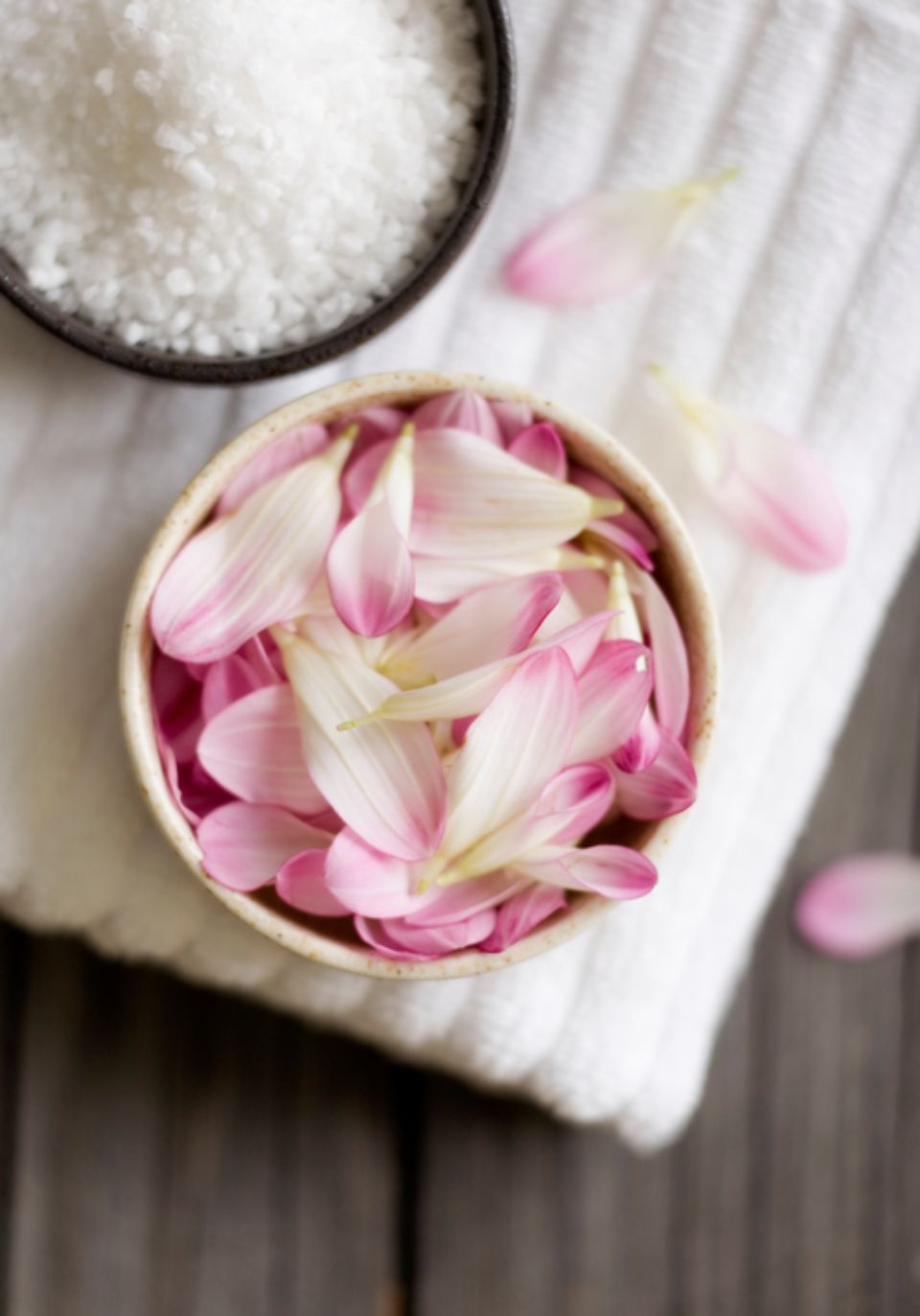 Pour le plaisir des yeux, ajoutez des fleurs ou des herbes séchées à votre sel de bain.