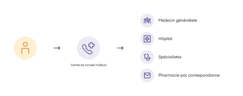 - Conseil télémédical par téléphone ou Doctor Chat via l'application Well, 24 heures sur 24