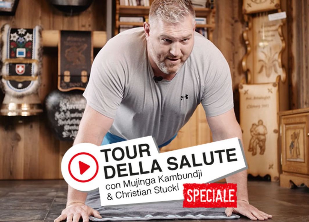 Christian Stucki non va in affanno nemmeno dopo 25 piegamenti. Il re della lotta svizzera allena il suo corpo in modo intenso. Non solo è forzuto, ma anche notevolmente flessibile per la sua stazza fisica. Questo grazie a esercizi regolari in grado di allenare la coordinazione. Quasi nessuno ha la pretesa, e soprattutto la possibilità, di diventare grande e forte come Stucki. Non è però accettabile la scusa di non avere tempo di andare in palestra. Vi presentiamo cinque esercizi ideati per l’allenamento a casa. Basta appena mezz’ora ogni giorno di ginnastica a casa per migliorare il proprio benessere fisico in men che non si dica.