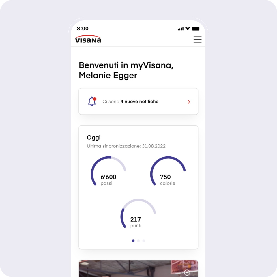Visana sostiene me e la mia famiglia in qualsiasi ambito. A fare la differenza sono l’aiuto competente e cordiale che fornisce in caso di domande, un eccellente servizio di assistenza durante la degenza in ospedale e il rapido rimborso delle prestazioni. La possibilità di registrare i miei successi sportivi grazie a myPoints e mettermi alla prova con varie sfide è motivazione pura per me. E poi trovo molto pratica l’app di Visana, dove ho sempre tutto a portata di mano: le tessere d’assicurato di tutta la famiglia, la consulenza medica via chat e la panoramica completa del mio programma bonus.